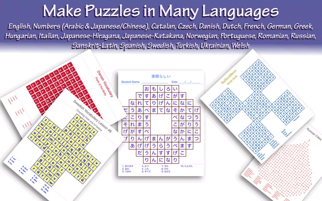 Whirlwind WordSearch creates engaging word search puzzles from your own lists of words... in many different languages!
